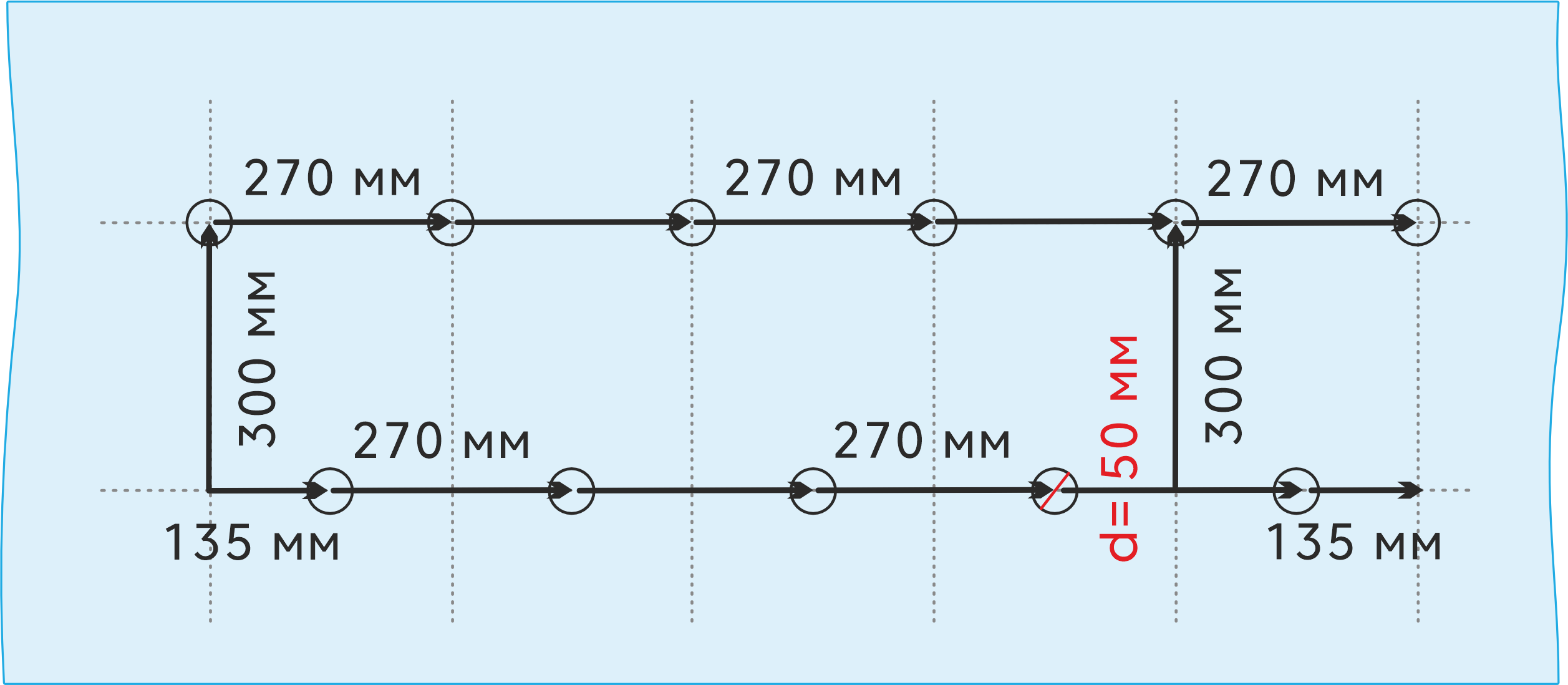 Стандартная схема перфорации на пленке для мульчирования СВЕТЛИЦА™ ГРУНТ